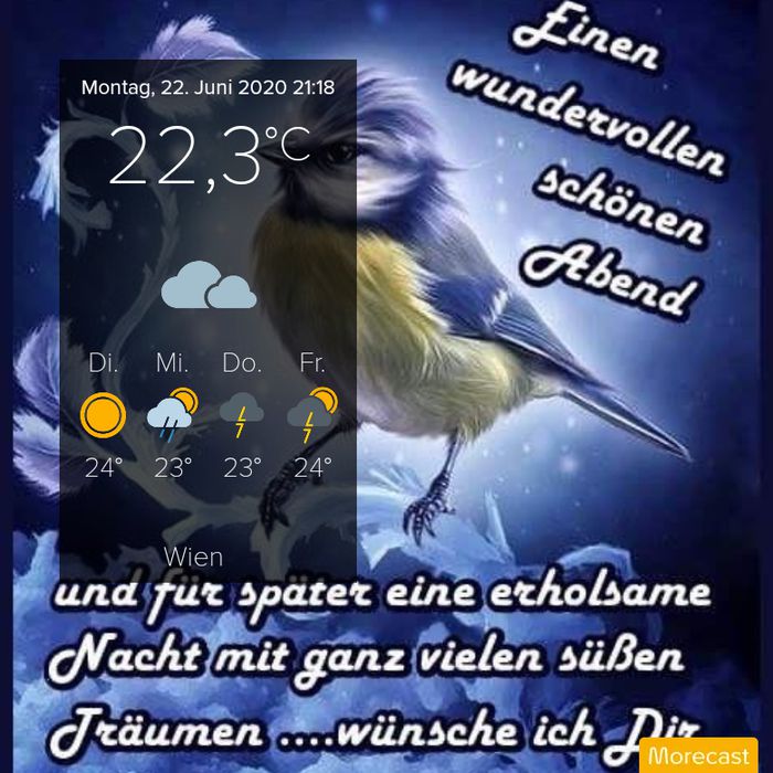 - Hirka hallo lieber Kurti 🙋♀️🤗 dankeschön dir für schöne Worte Schreibt 🤗😍 hoffentlich, kommt Sonne nach Wien Morgen🌞 ich schicke für Ihnen allen 🤗😍🌞 schönen Abend 🌹🌹🐦🐝🦋🌼🌿🐞 süße Träume 🤗😍 bis neue Woche 🙋♀️🌞🤗 schlaf gut ✨🌙🌠