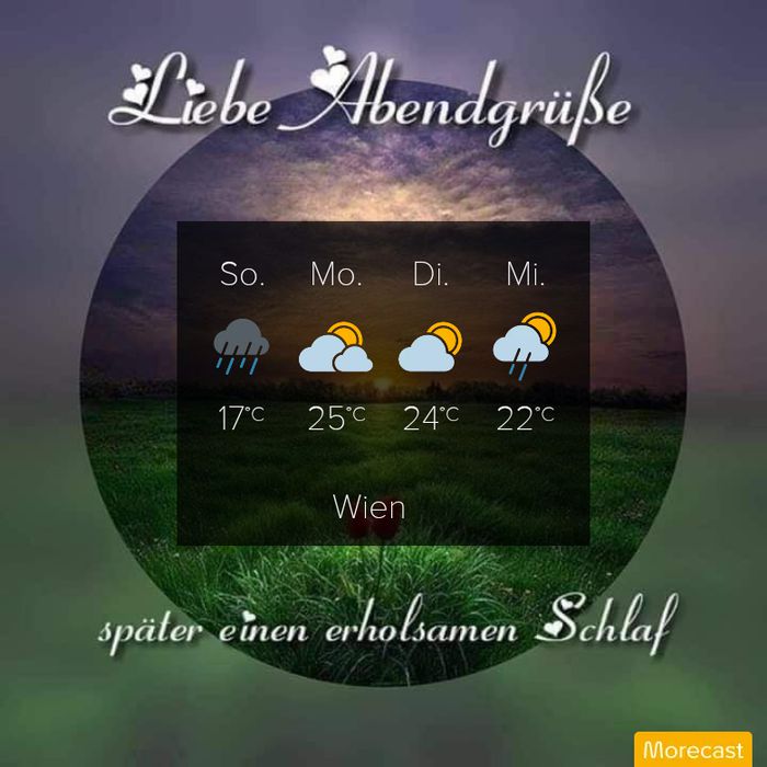 - Omino 🙋 Liebster Kurt schönen und gemütlichen Abend wünsche ich Dir 🌟. Genieße Dein Abendessen 🍽️. Dein lieber Sonnenschein 🌞 wünscht Dir angenehmen und ruhigen Mittwoch Abend. Schöne Abendstunden noch. Vielen Dank für netten Zeilen und gute Wünsche von Dir 😊. Wunderschönes Foto. 👌👌 Ich bedanke für Deine liebe Worte und schöne Meldung noch 🙂. In Opatija 🌴 heute war es am Morgen bewölkt und am Nachmittag sonnig bei 28 Grad 🌡️. Jetzt ist es wolkenlos bei 25 Grad 🌡️. Sei lieb umarmt und gedrückt liebe ❤️. Schicke ich Dir vom ganzen Herzen viele schöne Grüße zu Dir nach Dein schön Wien 🎡 von mir aus warm Opatija 🌴. Wünsche ich dir gute Nacht für später. Schlaf gut und träume was schönes lieber Freund 😴. Dein lieber Sonnenschein 🌞 💖💖💖💖💖💖💖 🐬