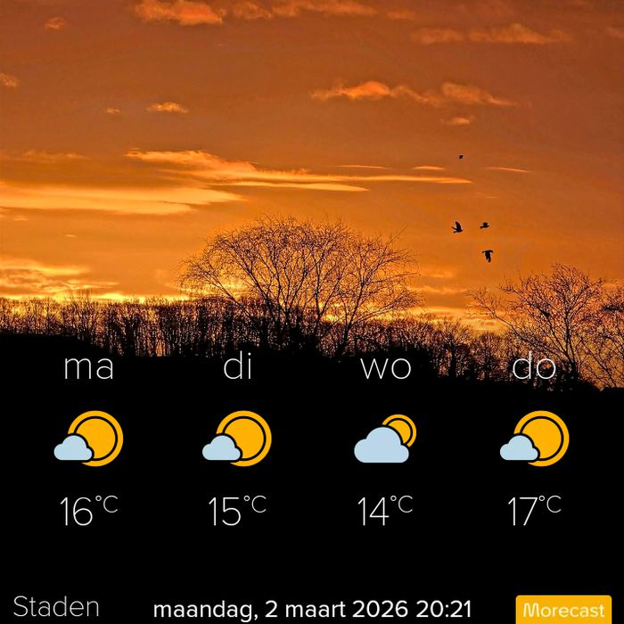 - JohannaR Hier zou de wind draaien naar het noorden en toenemen, daarom ben ik vanmorgen maar gauw op de fiets gestapt 😃 en hier is het ook wat frisser gebleven met 13.6 graden. En ik hoop dat jij verder ook weer genoten hebt van het warme zonnetje 🌞 nee dit weer verveelt nooit.