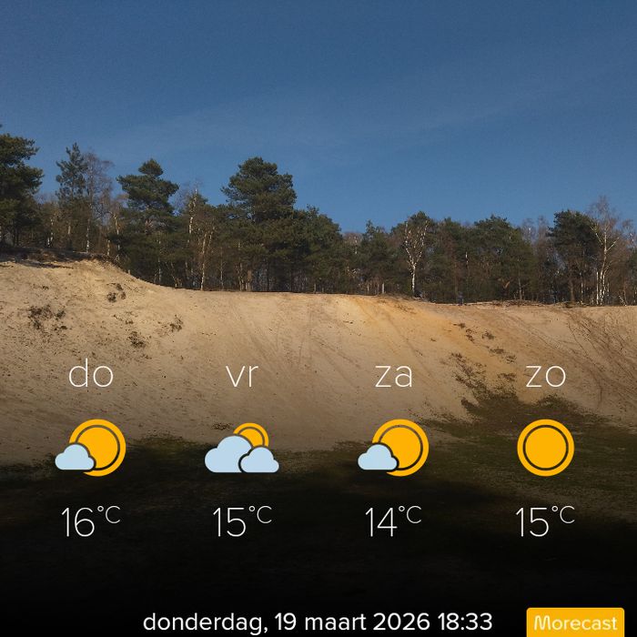 - JohannaR Ook hier was het koud vanmorgen vroeg met 2 1 graden, maar wat warmde het snel op door het heerlijke zonnetje 😃 het was vandaag 16.9 graden en windstil. Genieten hoor en ik heb even in het zonnetje gezeten. Maar ook nog in de lange broek hoor. Ik ben meestal niet zo snel met de korte broek 🙂 maar als ik ga wandelen gaat hij wel weer aan.